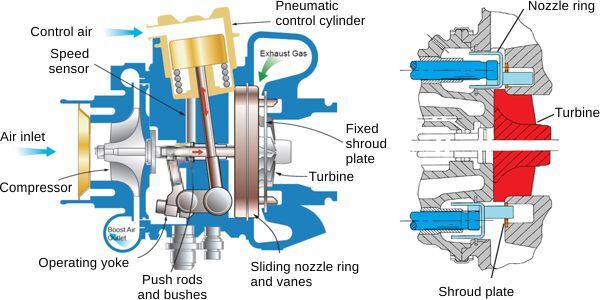 가변형상 터보차저는 엔진 각 구간별로 터보차저에 공급되는 배기가스의 양과 속도를 조절할 수 있는 기능을 갖췄다. 엔진의 저속구간에서는 적은 배기량으로도 터빈 휠이 회전할 수 있도록 배기가스 유로를 좁혀 속도를 향상시키며, 반대로 고속구간에서는 배기가스의 유로를 넓혀 터빈휠의 회전에 필요한 배기가스를 충분히 받으면서도 과부하를 방지할 수 있도록 고안된 방식이다.