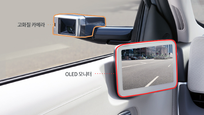 장점① 높은 카메라 성능으로 기존 아웃사이드 미러 대비 화각이 커져 사각지대가 개선되었다.