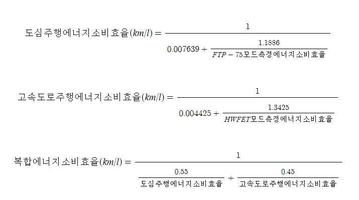 5-Cycle 보정식은 이 다섯가지 시험방법으로 검증된 도심주행 에너지 소비효율 및 고속도로주행 에너지 소비효율이 ①FTP-75모드로 측정한 도심주행 에너지소비효율 및 ②HWFET모드로 측정한 고속도로주행 에너지 소비효율과 유사하도록 적용하는 관계식을 의미한다.