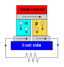 같은 온도에 있는 두 종류의 금속 접촉면에 전류를 흘리면 전류의 방향에 따라 접합면에서 열을 흡수하거나 발생하는 현상이 일어나는데 이를 펠티어 효과(Peltier effect)라고 한다. 두 종류의 도체를 결합하고 전류를 흐르도록 할 때, 한 쪽의 접점은 발열하여 온도가 상승하고 다른 쪽의 접점에서는 흡열하여 온도가 낮아지게 된다.